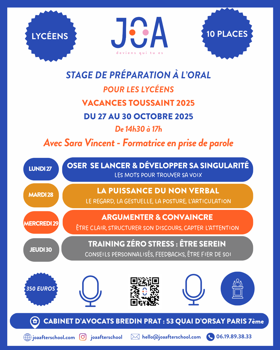 350 € le stage de prise de parole en public pour les lycéens