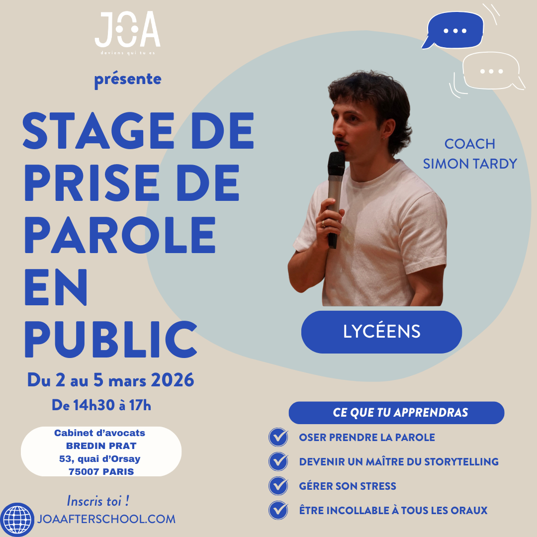 JOA accueille les collégiens et les lycéens en stage de prise de parole en public, pendant les vacances scolaires et avant les épreuves du Bac et du Brevet